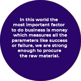 In this world the most important factor to do business is money which measures all the parameters like success or failure, we are strong enough to procure the raw material.
